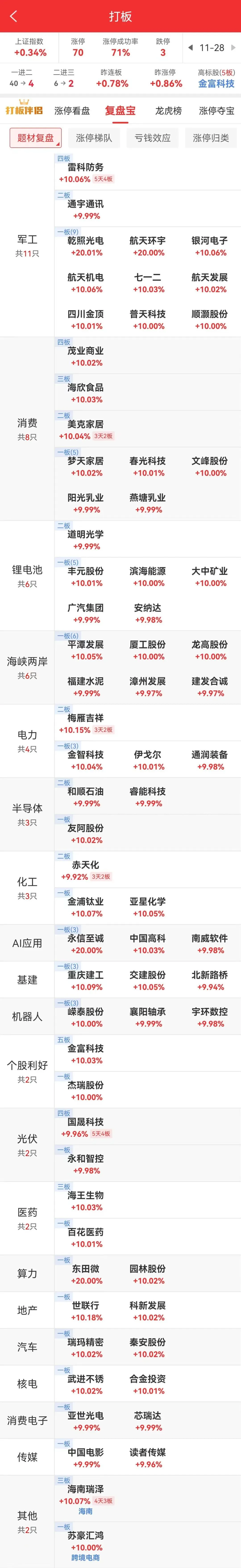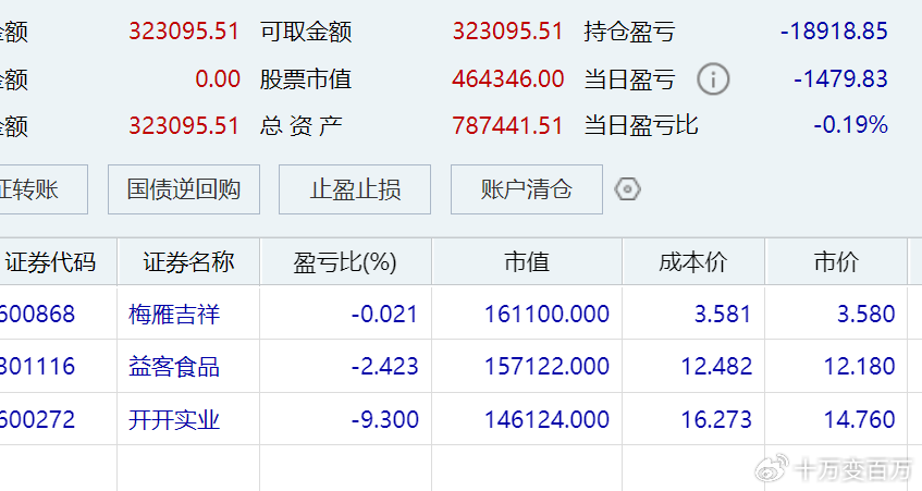 大盘定位 三大指数早盘翻红后维持震荡,收盘两市总成交不足1.6万亿,相较前一交易日缩量7%,上涨个股近4000家。 市场全天缩量轮动,题材切换较快。商业航天相对强势,其中通宇通讯一字,雷科防务反包五天四板,乾照光电20cm首板,航天发展午后涨停。 海峡两岸持续走强,其中厦工股份、福建水泥相继涨停,平潭发展午后涨停,海峡创新涨超16%。 此外基础建设交建股份、北新路桥等首板。 锂电池国晟科技五天四板,大中矿业首板。端侧AI道明光学二连板,机器人概念权重长盈精密涨超11%。 另有AI应用端、大消费、海南板块、AI安全轮动。 短线情绪局部强势。高位股梦天家居八天六板,国晟科技五天四板,前期人气股平潭发展午后涨停,但有广济药业跌停。 隔天,本来低开的襄阳轴承在上午10点20分左右突然拉升,不到五分钟直线涨停,随后以涨停板收盘。 不寻常的走势直接把襄阳轴承推上了热点,“社区大爱:襄阳轴承”的话题一度登上同花顺热点榜第一名。 操作及计划 周五股指期货交割日没有大跌,庆幸。现在分析的原因是前面几天已经跌过了,做空力量已经提前释放。 手中两个表都是新零售概念,年末会炒作一把,继续拿着。 周五打了一个板,中间炸了一下后回封住,龙虎榜显示量化成堆,风险难测。事后有人来分析了,你们看有没有道理: 目前持有股票如下,总仓位6成,起始资金10万,目前总资产78.7 万,总收益687%。 ============================= 盘中实时接收操作消息的服务号:【炒家生活】 敢同步发送实战操作的,不说全网唯一,至少全网罕见! 凡是点赞+“在看”的,都吃到涨停板了↓↓↓
