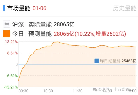三大指数全天震荡走强,上证指数涨超1%创趋势新高,收盘两市总成交超2.8万亿,相较前一交易日放量11%,上涨个股超3500家,超100家个股涨停。