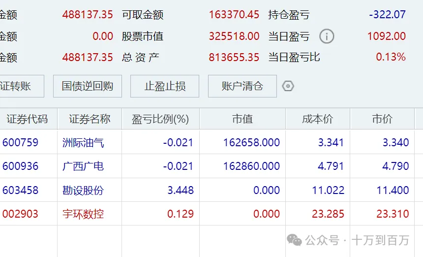 今天打板三个:洲际油气、广西广电成功买进,路畅科技手慢了一下没有买到。