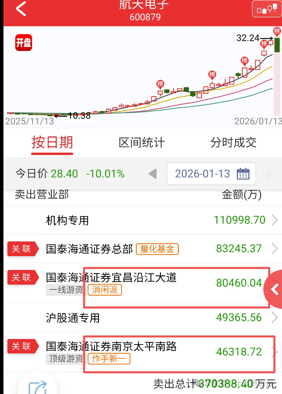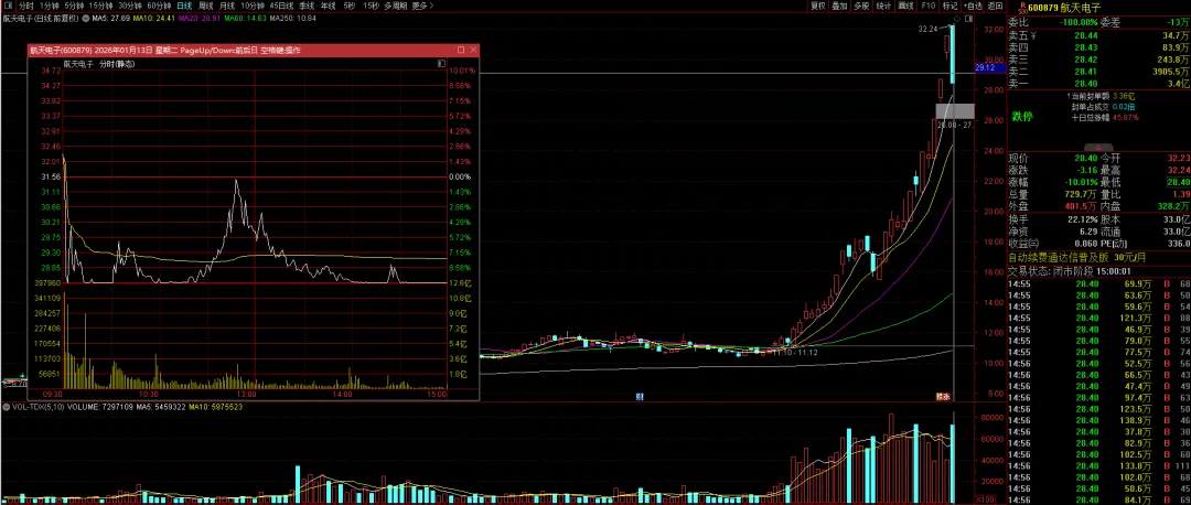 今天商业航天板块调整非常凶,几十只个股跌停,航天电子就是其中之一,全天成交212.5亿。盘后龙虎榜数据显示,消闲派卖出8个亿,作手新一卖出4.6个亿,应该是胜利大逃亡了。