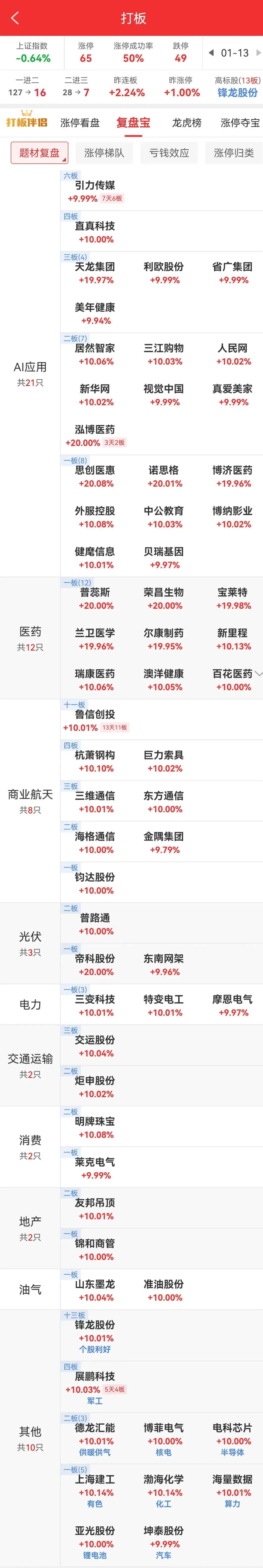 三大指数全天震荡走弱,深成指跌超-1%,创业板指跌近-2%,收盘两市总成交超3.6万亿,相较前一交易日接近持平,下跌个股超3500家,其中近50家个股跌停。市场氛围转弱,热门题材剧烈分化。AI应用端利欧股份等延续一字,省广集团、天龙集团等连板,但有易点天下炸板,蓝色光标大幅回落。AI医疗分支美年健康、泓博医药一字,兰卫医学等相继涨停,迪安诊断尾盘炸板。商业航天海格通信回封涨停,鲁信创投尾盘大长腿涨停,但有烽火通信炸板,中国卫通、航天发展等多股跌停。盘中题材快速切换,大金融、机器人概念、石油石化、智能驾驶、智能电网等轮动,但多股冲高回落,收盘炸板率超45%。短线情绪弱势,高位股鲁信创投大长腿涨停,但有中国卫通、航天发展等多股跌停,银河电子等批量大幅回撤,整体负反馈明显。