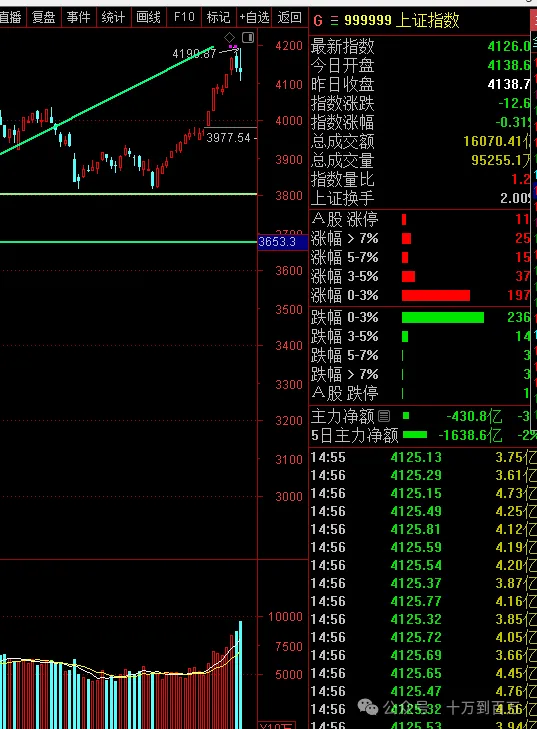 今天成交旦再创历史新高,但连续创新高的过程却是连续收阴线,如果是个股,这种形态无疑是典型的巨量阴见顶!风险极大。