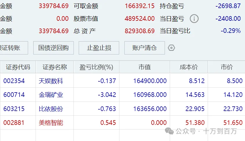 目前持有股票如下,总仓位6成,起始资金10万,目前总资产82.9万,总收益729%。