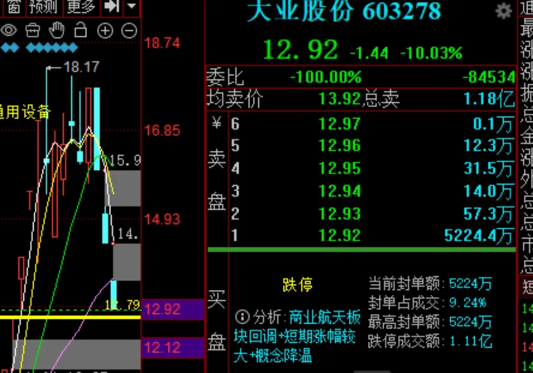 盘面上,商业航天大幅回调是意料之中的,毕竟涨多了下跌是大A的CTMD(传统美德),而且基本上炒作之后就是一地鸡毛,就像前几年的光伏、区域链、虚拟币之类的,千万不要听信网上那些拼命吹商业航天还要大涨特涨,至少会出现50个以上的10倍股的大忽悠,他们嘴巴一张一合过了嘴瘾,你听信了可能要付出真金白银的代价!