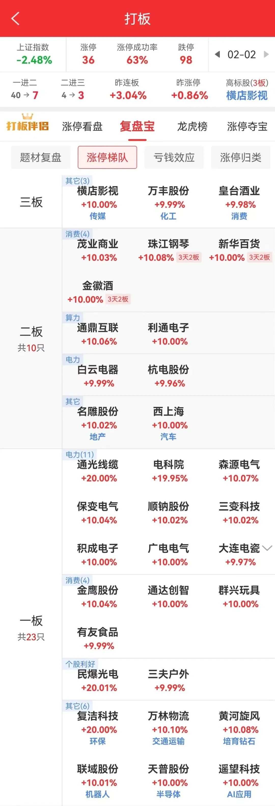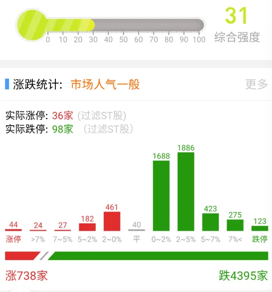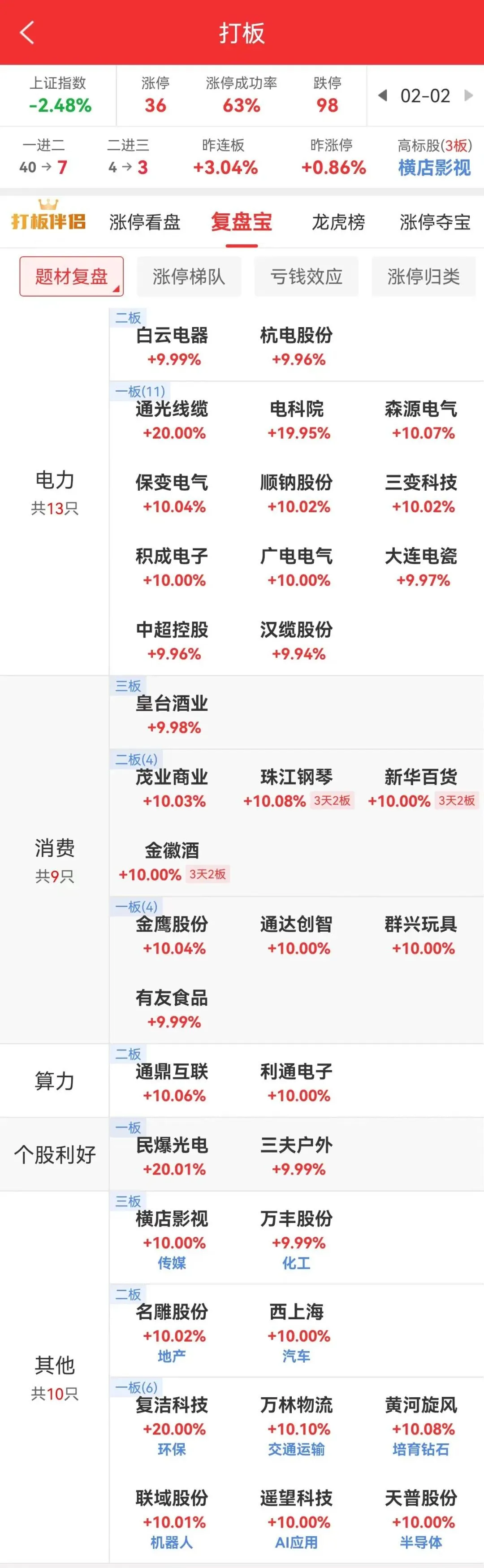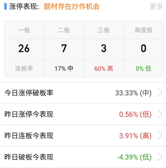 另有化工、机器人概念、酿酒、大消费等弱势轮动。短线情绪弱势,高位股白银有色等一字跌停,百川股份、浙文互联、西部材料等题材前排冲板回落,炸板率超30%。